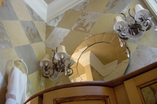 His and hers bathrooms. Distressed metal leaf with soft warm glaze.