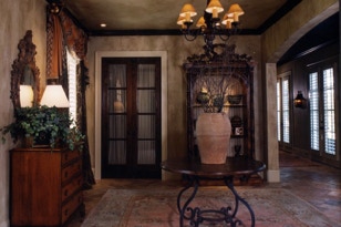 Walls and ceiling textured, painted, and glazed as old world plaster.