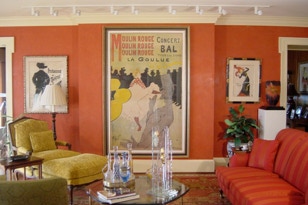 Walls coated in venetian plaster. Color was chosen to coordinate with wall prints.